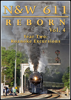 Norfolk & Western 611 - Reborn Volume 5Norfolk & Western J-class 4-8-4 #611 returned to the Norfolk Southern mainline in 2017 for 4 weekends of public excursions in the spring. In this video - the fifth and final volume in the "Reborn" series - we'll look at 2 of those weekends as #611 ran over some familiar territory in Virginia and North Carolina. As usual the locomotive spent the winter at the North Carolina Transportation Museum, and our coverage begins on Friday April 21st with a short ferry move from Spencer to Greensboro, NC for the 2nd weekend of excursions. The next day #611 pulled the first of two trips from Greensboro to Roanoke, a repeat of the previous year's popular "Roanoker" excursions which were covered in Reborn Vol. 3. You'll see both trips (April 22nd & 23rd), as #611 pulled a 20-car train under cloudy skies and, at times, heavy rain. These 260-mile trips ran from Greensboro north to Hurt, VA on the former Southern mainline, before taking the Virginian Railway west to Roanoke. With slippery rails and numerous steep grades the "J" put on a spectacular show, thanks in part to the inclement weather. The second half of the program covers the last trips of the year: the annual Roanoke excursions. You'll see all three days of operation (May 27-29) during the Memorial Day weekend, as #611 pulled half-day trips over two of the most famous grades on the N&W: Blue Ridge and Christiansburg Mountain. 2017 featured an extra trip over the Christiansburg grade, as the Monday trip to Lynchburg was cancelled in favor of the more popular run to Walton. Despite the familiar routes, you'll see #611 working hard at many new locations. Filmed entirely in HD, this program features #611 racing down the mainline with a heavy train and no diesel assistance. You'll see the legendary J-class thundering through the mountains, just as the N&W intended when she rolled out of the Roanoke shops in 1950. This program has minimal narration (with the option to turn it on or off) and no distracting music. It's available on standard definition widescreen DVD, High Definition Blu-ray disc, and for rental or purchase through Vimeo's On Demand streaming service. | |