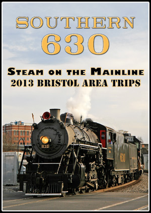 Southern 630 - Steam on the Mainline2013 Bristol Area TripsAs part of the new Norfolk Southern '21st Century Steam' program, Southern Railway 2-8-0 #630 powered two excursions in early March 2013, originating from the historic depot in Bristol, VA. Located on the Virginia/Tennessee border, Bristol was served by both the Norfolk & Western and the Southern Railway in the steam era. Both railroads shared the depot on State Street, with the Southern heading south to Knoxville, TN and the N&W heading north to Roanoke, VA. On Saturday March 9th, #630 pulled a public excursion north to Radford, VA on the old N&W Pulaski District. This 221-mile roundtrip passed many locations made famous by photographer O. Winston Link including Seven Mile Ford, Rural Retreat, and Max Meadows. A cold morning made for great steam plumes, as #630 put on an impressive show pulling the 13-car train. On Sunday March 10th, #630 headed south to Bulls Gap, TN with another public excursion, this time on former Southern rails. This 152-mile roundtrip passed some familiar territory for #630, including Johnson City, TN where she operated on the ET&WNC from 1952-1967 before being reacquired by the Southern for excursion service. This program also has coverage of the Monday ferry move to Roanoke, VA where #630 would operate more public trips the following weekend. Filmed entirely in HD, this program features high speed running with great stack talk, as #630 gives it her all with her 56-inch drivers. This program has minimal narration (with the option to turn it on or off) and no distracting music. | |